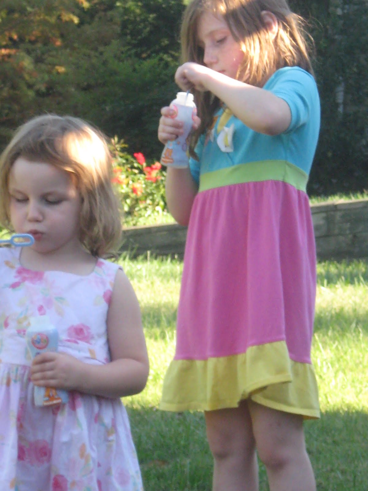 A small herd of little girls wearing party dresses and blowing bubbles. I know, the cute factor can't even be calculated.